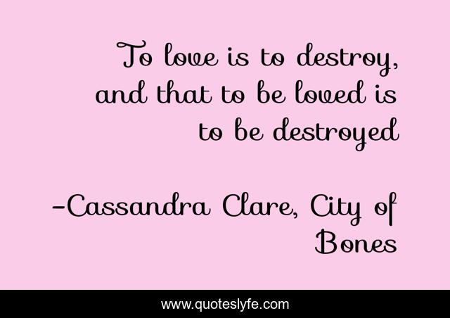"Cassandra Clare, City of Bones Quotes." Quoteslyfe.com, 2025. Mon. 08 Dec. 2025. <https://www.quoteslyfe.com/quote/To-love-is-to-destroy-and-that-279644>.