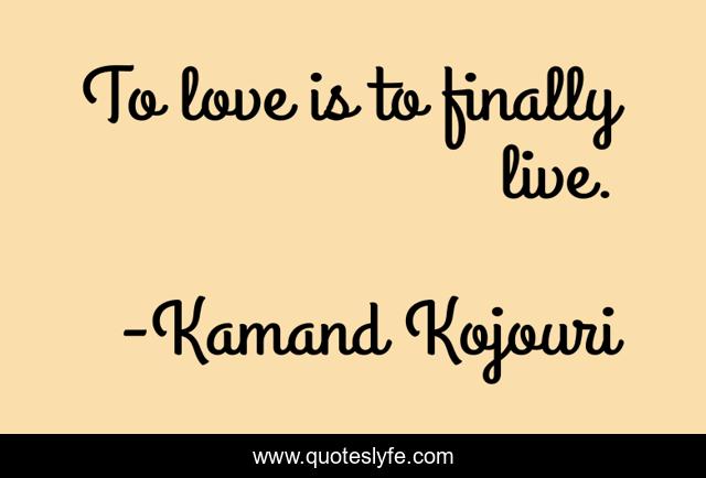 "Kamand Kojouri Quotes." Quoteslyfe.com, 2025. Fri. 05 Dec. 2025. <https://www.quoteslyfe.com/quote/To-love-is-to-finally-live-90191>.