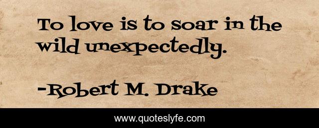 This page presents the quote "To love is to soar in the wild unexpectedly.". Author of this quote is Robert M. Drake. This quote is about lovequotes, sadquotes, poetry, quotes, instadaily, happyquotes, relationships, sayings, writer,.