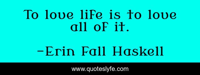 This page presents the quote "To love life is to love all of it.". Author of this quote is Erin Fall Haskell. This quote is about inspirituality, love, life, spirituality, change, truth, cause, spirit, affection,.