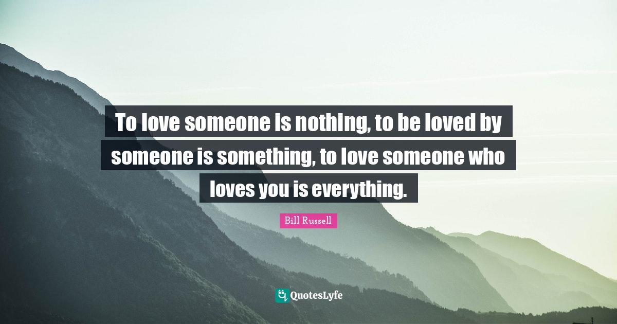 This page presents the quote "To love someone is nothing, to be loved by someone is something, to love someone who loves you is everything.". Author of this quote is Bill Russell. This quote is about love, loving someone, inspirational love, love someone,.