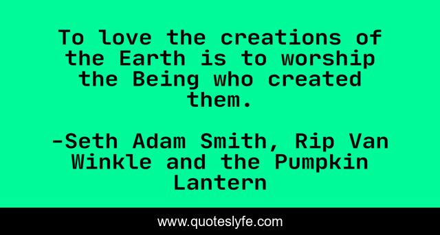 "Seth Adam Smith, Rip Van Winkle and the Pumpkin Lantern Quotes." Quoteslyfe.com, 2025. Mon. 08 Dec. 2025. <https://www.quoteslyfe.com/quote/To-love-the-creations-of-the-Earth-72725>.