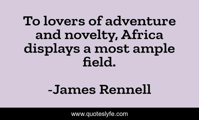 This page presents the quote "To lovers of adventure and novelty, Africa displays a most ample field.". Author of this quote is James Rennell. This quote is about cartography, action-adventure, africa, exploration, adventure, geography,.