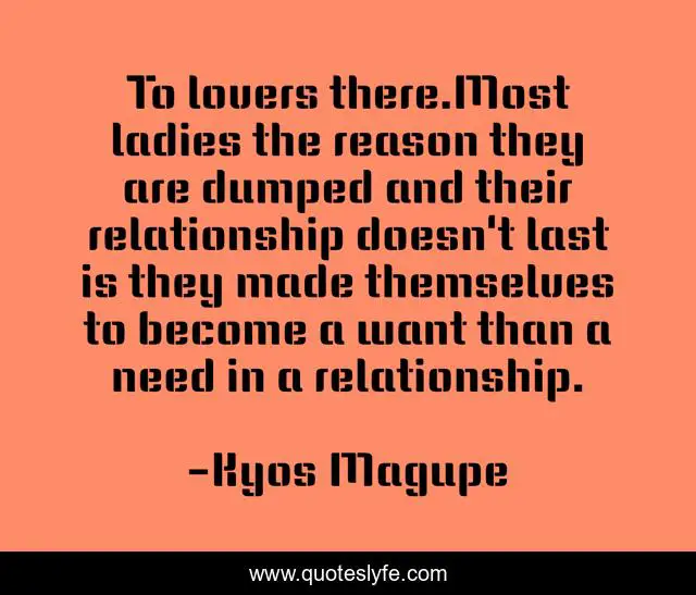 To lovers there.Most ladies the reason they are dumped and their relationship doesn't last is they made themselves to become a want than a need in a relationship.