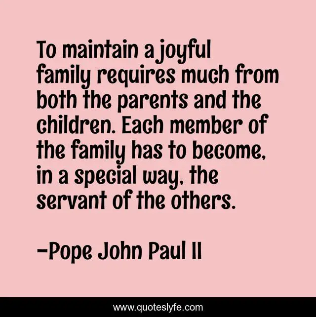 "Pope John Paul II Quotes." Quoteslyfe.com, 2025. Mon. 08 Dec. 2025. <https://www.quoteslyfe.com/quote/To-maintain-a-joyful-family-requires-much-298789>.