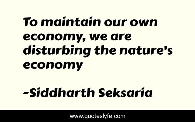 This page presents the quote "To maintain our own economy, we are disturbing the nature's economy". Author of this quote is Siddharth Seksaria. This quote is about criticism, man-against-nature, nature,.
