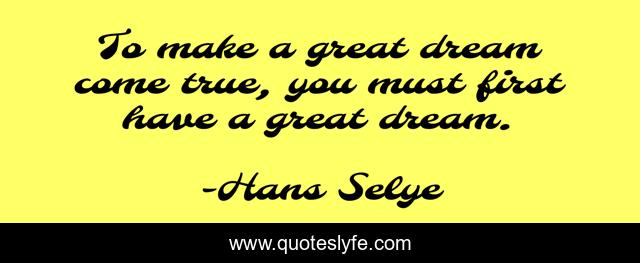 "Hans Selye Quotes." Quoteslyfe.com, 2025. Tue. 30 Dec. 2025. <https://www.quoteslyfe.com/quote/To-make-a-great-dream-come-true-130892>.