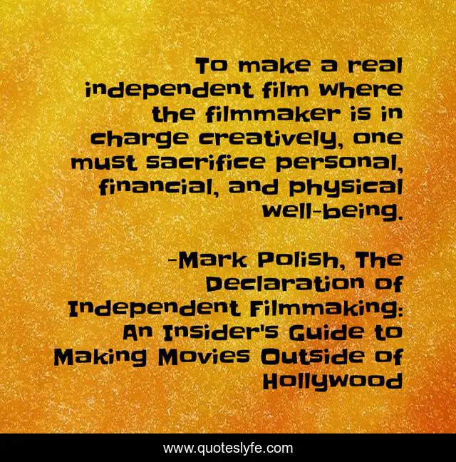 "Mark Polish, The Declaration of Independent Filmmaking: An Insider's Guide to Making Movies Outside of Hollywood Quotes." Quoteslyfe.com, 2025. Sat. 06 Dec. 2025. <https://www.quoteslyfe.com/quote/To-make-a-real-independent-film-where-108751>.