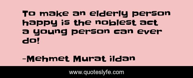 This page presents the quote "To make an elderly person happy is the noblest act a young person can ever do!". Author of this quote is Mehmet Murat ildan. This quote is about mehmet-murat-ildan, making-happy, turkish-playwrights, noblest, turkish-wisdom-words, turkish, young, turkish-writers, turkish-literature,.