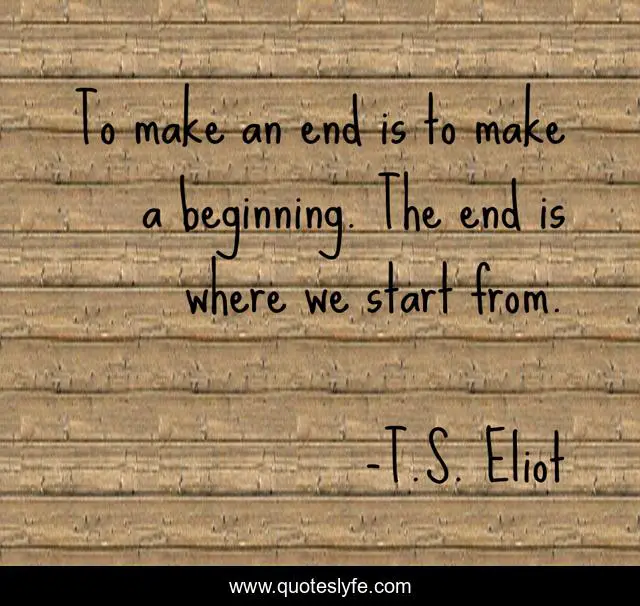 This page presents the quote "To make an end is to make a beginning. The end is where we start from.". Author of this quote is T.S. Eliot. .