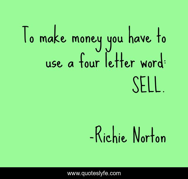 This page presents the quote "To make money you have to use a four letter word: SELL.". Author of this quote is Richie Norton. This quote is about confidence, self-mastery, mindful, marketing, work, success, self-help, entrepreneur, innovation,.