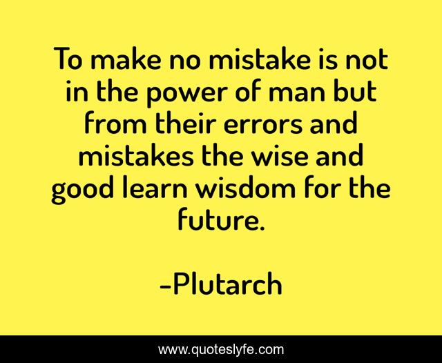 This page presents the quote "To make no mistake is not in the power of man but from their errors and mistakes the wise and good learn wisdom for the future.". Author of this quote is Plutarch. This quote is about failures, mistakes,.