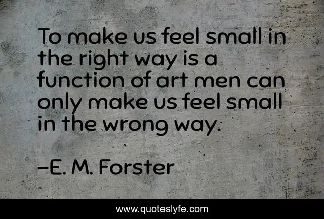 This page presents the quote "To make us feel small in the right way is a function of art men can only make us feel small in the wrong way.". Author of this quote is E. M. Forster. This quote is about small, men, way,.