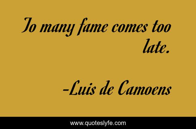 This page presents the quote "To many fame comes too late.". Author of this quote is Luis de Camoens. .