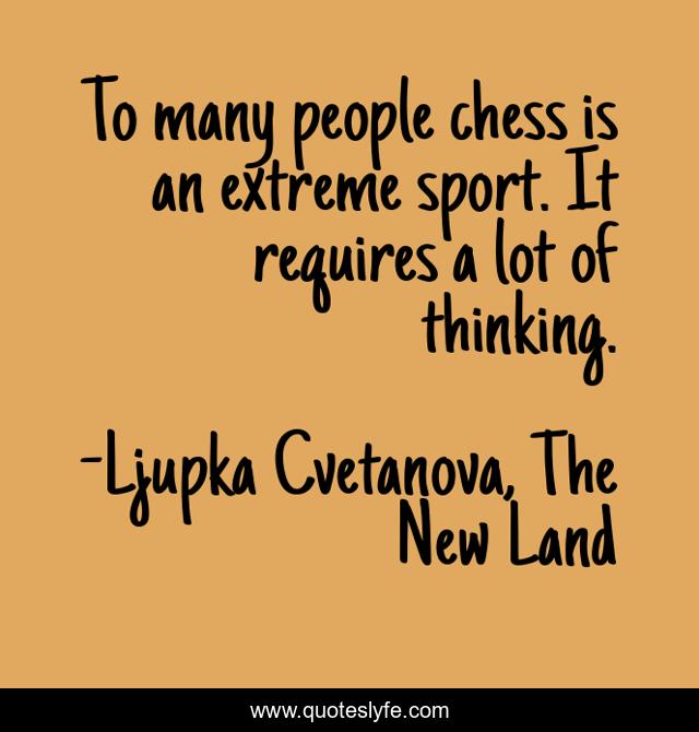 This page presents the quote "To many people chess is an extreme sport. It requires a lot of thinking.". Author of this quote is Ljupka Cvetanova, The New Land. This quote is about thinking, aphorisms, sport, chess, extreme,.
