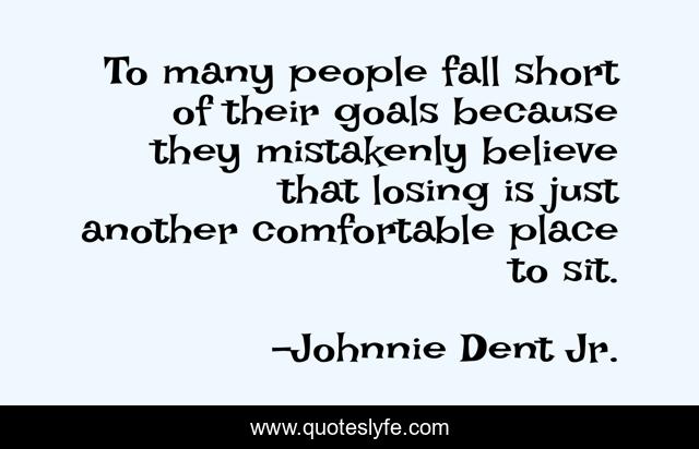 This page presents the quote "To many people fall short of their goals because they mistakenly believe that losing is just another comfortable place to sit.". Author of this quote is Johnnie Dent Jr.. This quote is about perseverance, winning, goals, losing, goal-setting, falling-short,.