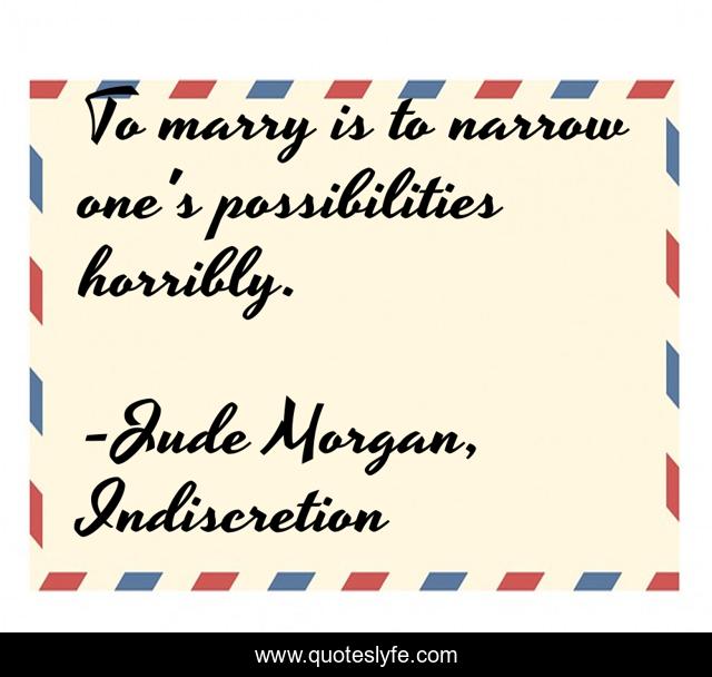 This page presents the quote "To marry is to narrow one's possibilities horribly.". Author of this quote is Jude Morgan, Indiscretion. .