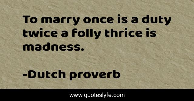 This page presents the quote "To marry once is a duty twice a folly thrice is madness.". Author of this quote is Dutch proverb. .