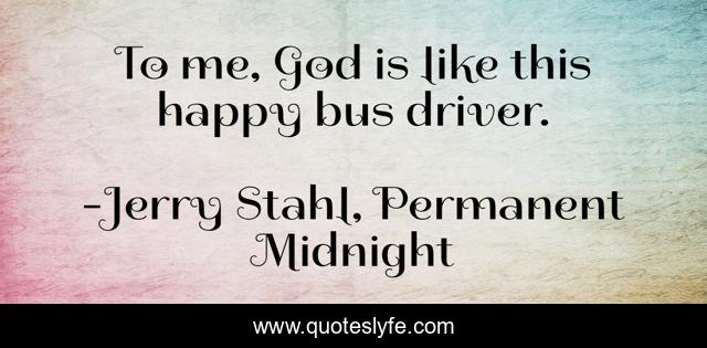 This page presents the quote "To me, God is like this happy bus driver.". Author of this quote is Jerry Stahl, Permanent Midnight. This quote is about drugs, god,.