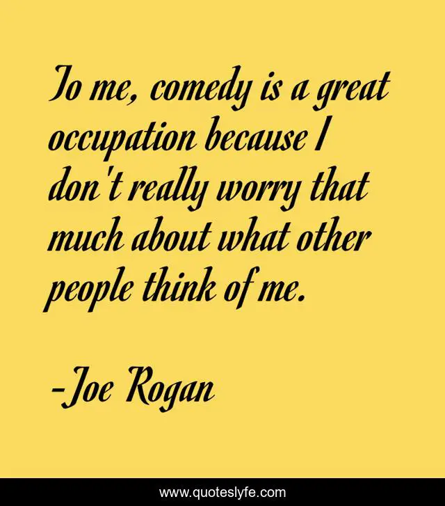 This page presents the quote "To me, comedy is a great occupation because I don't really worry that much about what other people think of me.". Author of this quote is Joe Rogan. This quote is about comedy, worry,.