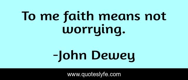 This page presents the quote "To me faith means not worrying.". Author of this quote is John Dewey. This quote is about me, worrying, means,.