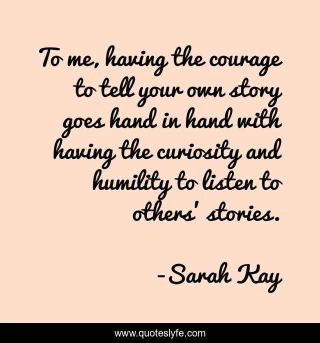 This page presents the quote "To me, having the courage to tell your own story goes hand in hand with having the curiosity and humility to listen to others' stories.". Author of this quote is Sarah Kay. This quote is about me, curiosity, humility,.