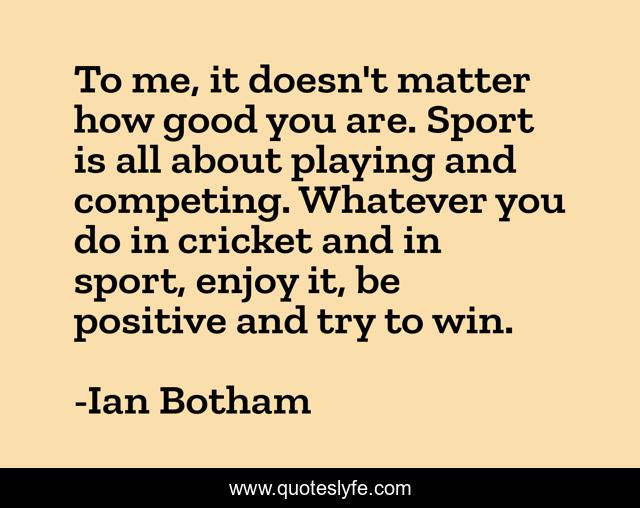 This page presents the quote "To me, it doesn't matter how good you are. Sport is all about playing and competing. Whatever you do in cricket and in sport, enjoy it, be positive and try to win.". Author of this quote is Ian Botham. This quote is about me, positive, confidence, good,.