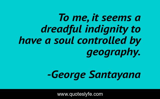 This page presents the quote "To me, it seems a dreadful indignity to have a soul controlled by geography.". Author of this quote is George Santayana. This quote is about me, soul, geography,.