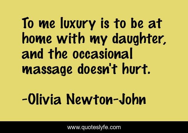 This page presents the quote "To me luxury is to be at home with my daughter, and the occasional massage doesn't hurt.". Author of this quote is Olivia Newton-John. This quote is about home, daughter, hurt,.