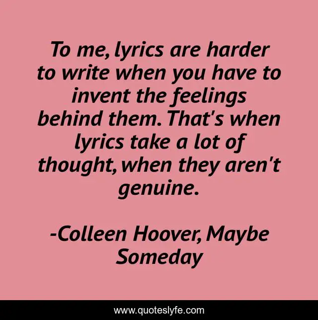 "Colleen Hoover, Maybe Someday Quotes." Quoteslyfe.com, 2025. Sun. 07 Dec. 2025. <https://www.quoteslyfe.com/quote/To-me-lyrics-are-harder-to-write-161786>.