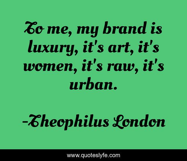 This page presents the quote "To me, my brand is luxury, it's art, it's women, it's raw, it's urban.". Author of this quote is Theophilus London. This quote is about me, brand, art,.