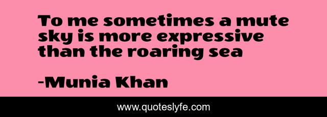 This page presents the quote "To me sometimes a mute sky is more expressive than the roaring sea". Author of this quote is Munia Khan. This quote is about spiritual, roaring, mute, feel, philosophy, sky, quiet, vastness, noiseless,.