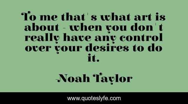 This page presents the quote "To me that's what art is about - when you don't really have any control over your desires to do it.". Author of this quote is Noah Taylor. This quote is about control, me,.