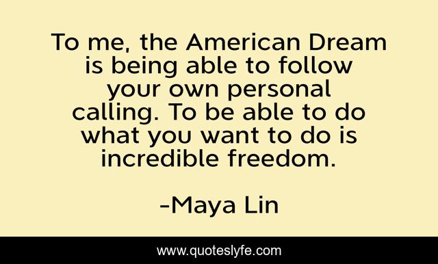 This page presents the quote "To me, the American Dream is being able to follow your own personal calling. To be able to do what you want to do is incredible freedom.". Author of this quote is Maya Lin. This quote is about me, american dream, american,.