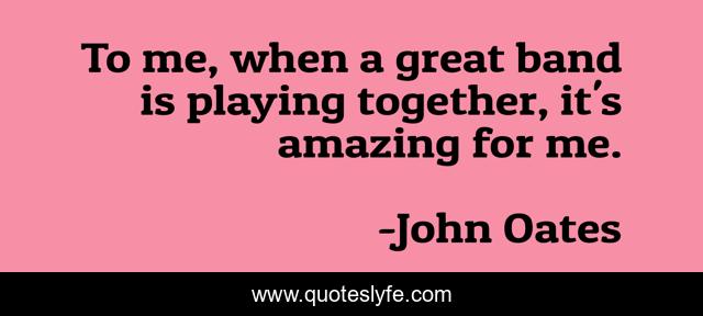 This page presents the quote "To me, when a great band is playing together, it's amazing for me.". Author of this quote is John Oates. This quote is about me, great, together,.
