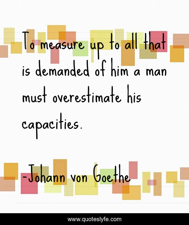 This page presents the quote "To measure up to all that is demanded of him a man must overestimate his capacities.". Author of this quote is Johann von Goethe. .