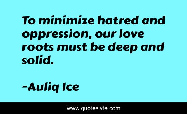 This page presents the quote "To minimize hatred and oppression, our love roots must be deep and solid.". Author of this quote is Auliq Ice. This quote is about true-love, love, real-love, affection,.