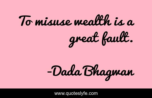 "Dada Bhagwan Quotes." Quoteslyfe.com, 2025. Sat. 06 Dec. 2025. <https://www.quoteslyfe.com/quote/To-misuse-wealth-is-a-great-fault-138441>.