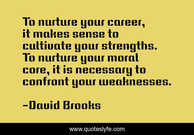 This page presents the quote "To nurture your career, it makes sense to cultivate your strengths. To nurture your moral core, it is necessary to confront your weaknesses.". Author of this quote is David Brooks. This quote is about discipleship, character, humility,.