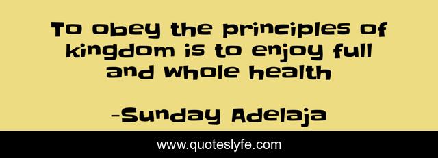 This page presents the quote "To obey the principles of kingdom is to enjoy full and whole health". Author of this quote is Sunday Adelaja. This quote is about kingdom, health, obey, principle,.