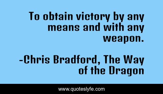 "Chris Bradford, The Way of the Dragon Quotes." Quoteslyfe.com, 2025. Mon. 08 Dec. 2025. <https://www.quoteslyfe.com/quote/To-obtain-victory-by-any-means-and-240973>.