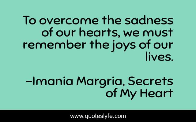"Imania Margria, Secrets of My Heart Quotes." Quoteslyfe.com, 2025. Mon. 08 Dec. 2025. <https://www.quoteslyfe.com/quote/To-overcome-the-sadness-of-our-hearts-47750>.