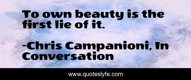 "Chris Campanioni, In Conversation Quotes." Quoteslyfe.com, 2025. Sat. 06 Dec. 2025. <https://www.quoteslyfe.com/quote/To-own-beauty-is-the-first-lie-167600>.