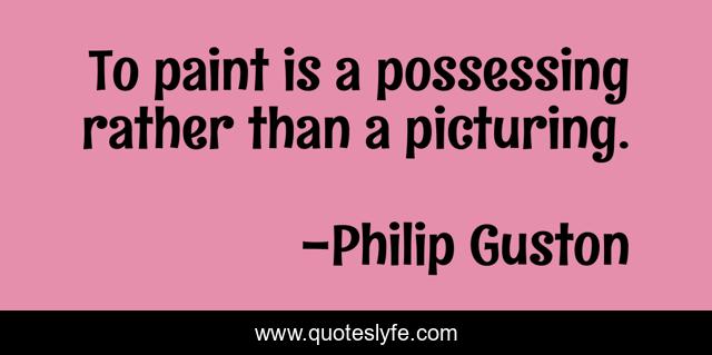 This page presents the quote "To paint is a possessing rather than a picturing.". Author of this quote is Philip Guston. This quote is about rather, paint,.