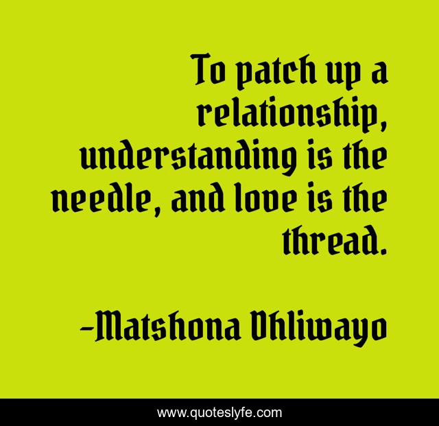"Matshona Dhliwayo Quotes." Quoteslyfe.com, 2025. Fri. 05 Dec. 2025. <https://www.quoteslyfe.com/quote/To-patch-up-a-relationship-understanding-is-198898>.