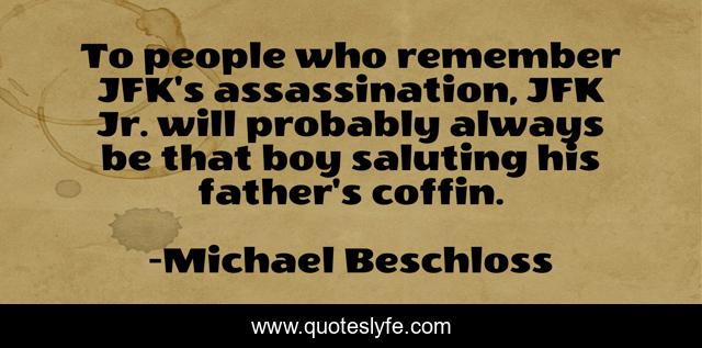 This page presents the quote "To people who remember JFK's assassination, JFK Jr. will probably always be that boy saluting his father's coffin.". Author of this quote is Michael Beschloss. This quote is about father, remember, people,.