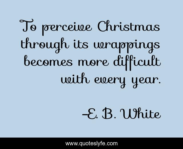 "E. B. White Quotes." Quoteslyfe.com, 2025. Fri. 05 Dec. 2025. <https://www.quoteslyfe.com/quote/To-perceive-Christmas-through-its-wrappings-becomes-290530>.