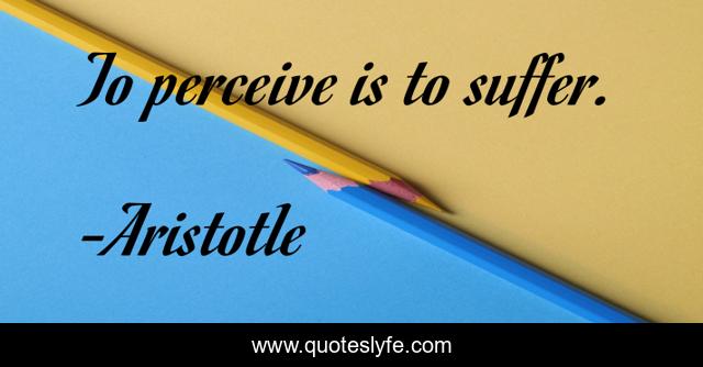 This page presents the quote "To perceive is to suffer.". Author of this quote is Aristotle. This quote is about life, suffer, understanding, empathy,.