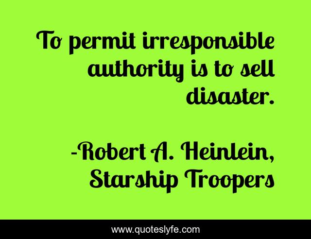 "Robert A. Heinlein, Starship Troopers Quotes." Quoteslyfe.com, 2025. Sat. 06 Dec. 2025. <https://www.quoteslyfe.com/quote/To-permit-irresponsible-authority-is-to-sell-56575>.