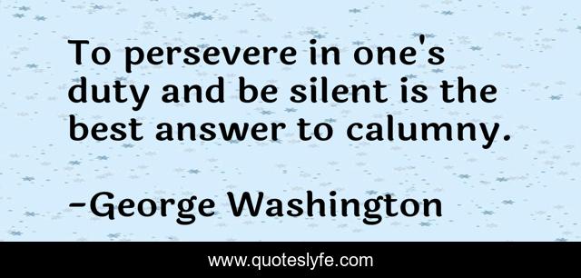 This page presents the quote "To persevere in one's duty and be silent is the best answer to calumny.". Author of this quote is George Washington. This quote is about calumny, insults,.